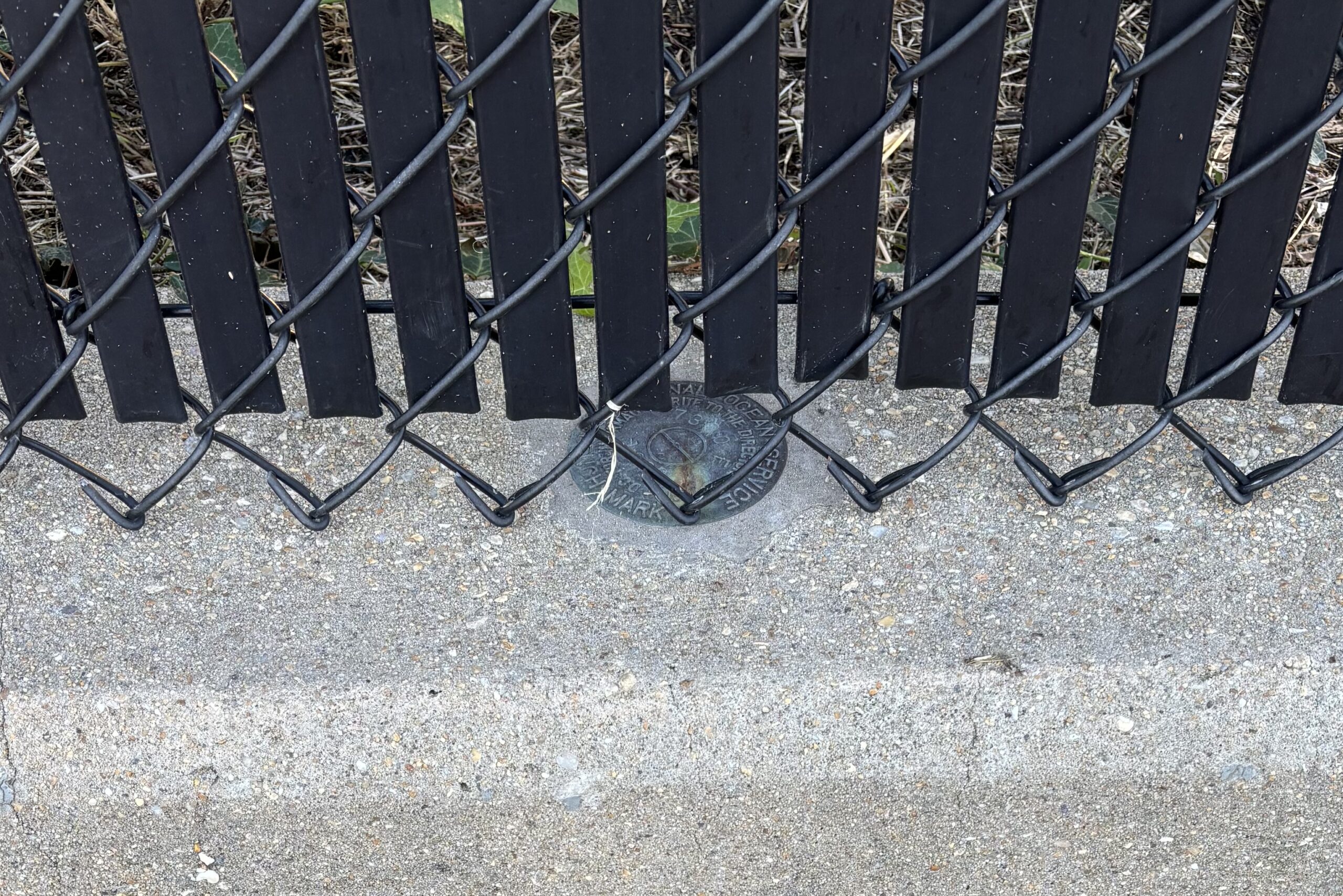 Log: Recovered on Tuesday, 11/04/2025 at 4:01pm EST. The benchmark disc itself is in good condition, but a chain-link fence on the retaining wall prevented me from getting a clean photo, and will likely interfere with any surveying-related use of the station. I returned on 11/05 at 7:16am to take a better photo, as my initial photo was out of focus.